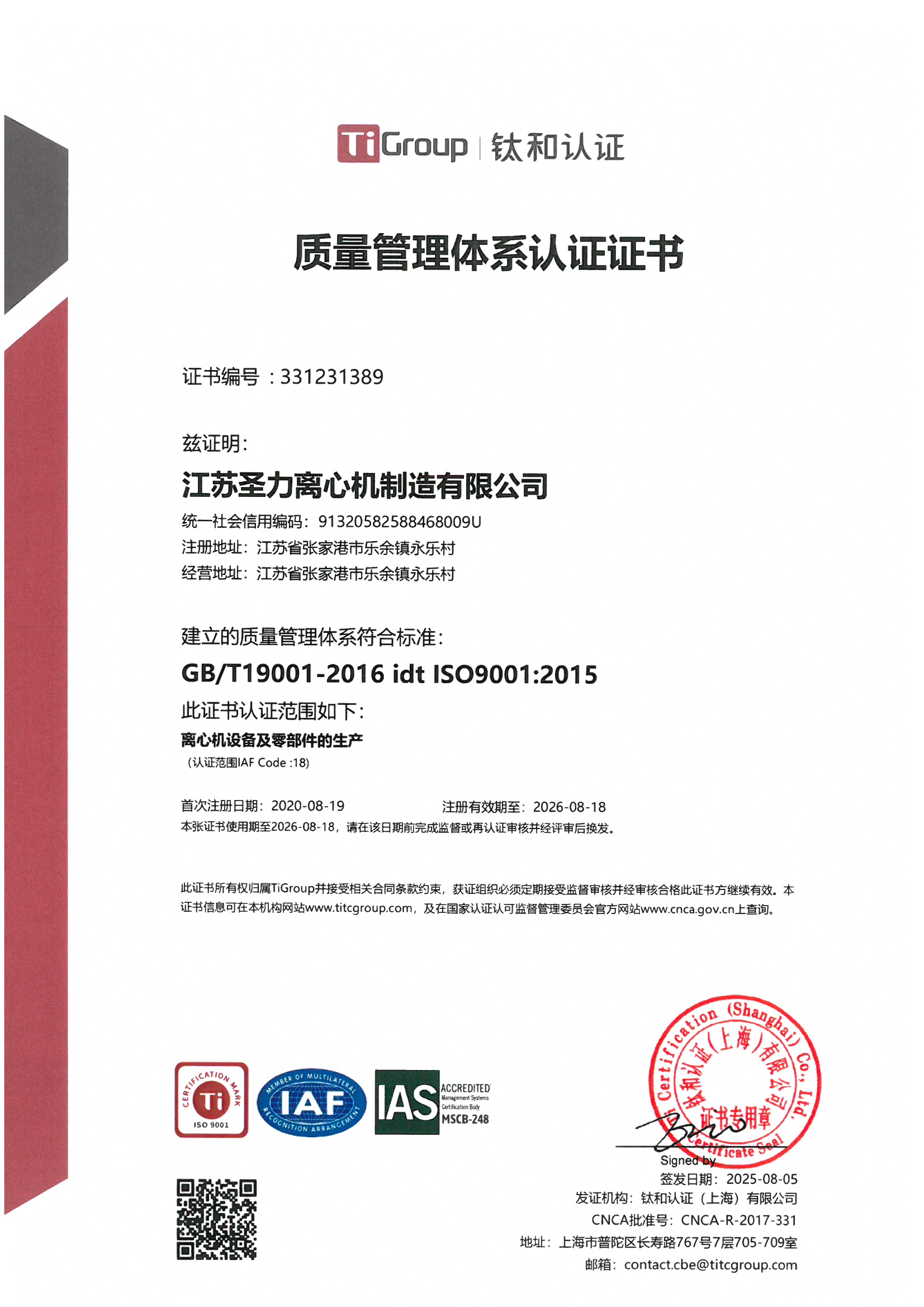 江蘇圣力離心機制造有限公司是國內分離機械行業(yè)中主要的離心機生產企業(yè),對離心機的研究、設計、制造有多年的歷史,擁有齊全的設備、完善的檢測手段。公司已通過IS09000國際質量體系認證、ISO14001環(huán)境管理體系認證、ISO45001:2018職業(yè)健康安全管理體系認證和CE認證,是江蘇省高新技術企業(yè),曾榮獲國家和地方多項榮譽稱號。